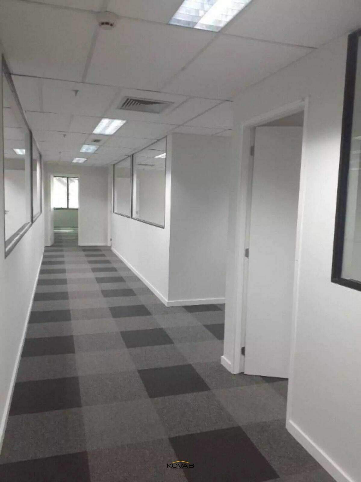 Piso com carpete, garantindo conforto acústico e um ambiente corporativo elegante.